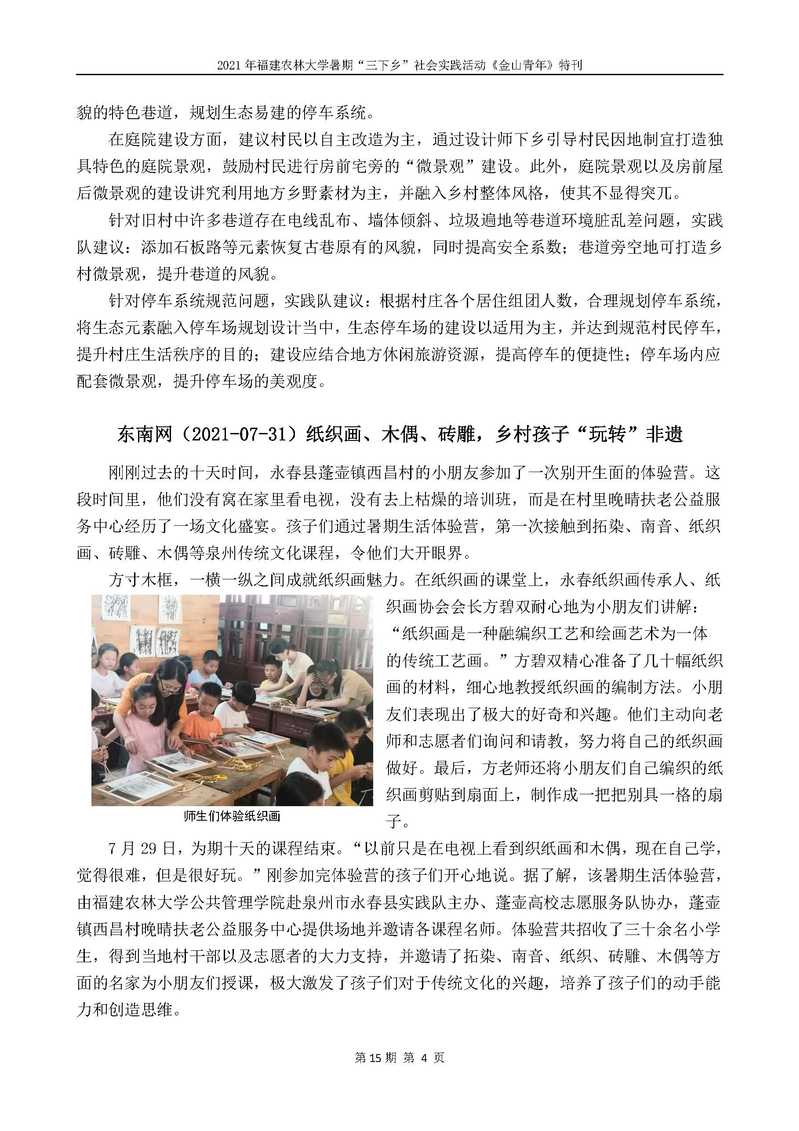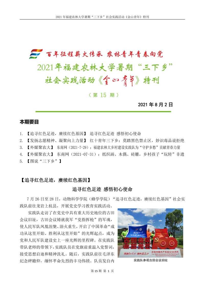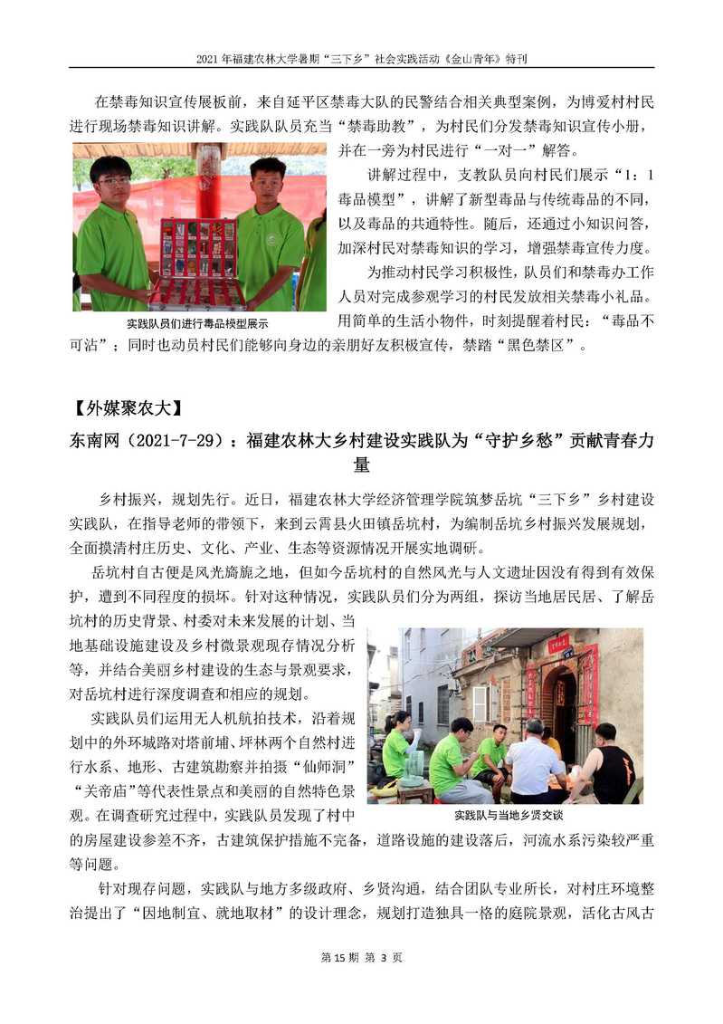 2021年开元kaiyuan(中国)暑期“三下乡”社会实践活动《金山青年》特刊第十五期