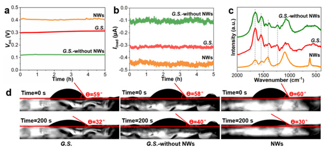 2020年,美国麻省大学的Yao J团队在《Nature》上首次报道,利用细菌蛋白纳米线(Protein nanowires)作为吸湿材料,与金电极组装置制备出的HEG,表现出良好的、可持续的湿气发电性能,但仍存在较大缺陷:(1)硫还原地杆菌(G. sulfurreducens)中蛋白纳米导线的提取过程复杂、耗时、且产率极低;(2)金电极昂贵、器件组装过程复杂。这些不足极大地限制了其应用前景。周顺桂研究团队提出了一种全细胞的生物膜湿气发电技术,有效克服上述技术缺陷,并首次揭示了微生物膜的水伏效应,研制了基于ITO导电玻璃和细菌全细胞的三明治结构的生物膜湿气发电机,为可持续湿气发电技术提供了一种新的范式。