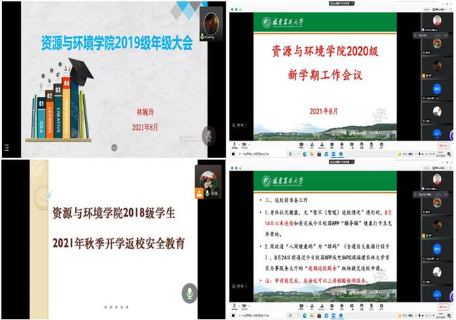 近日,为保证学生顺利返校,切实引导学生尽快适应新学期的学习生活,资源与环境学院各年级通过线上形式,召开了2021年秋季学期老生返校前线上年级会议。