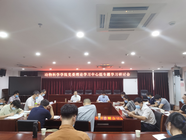 9月16日下午,动物科学学院党委在学院会议室召开理论学习中心组专题学习研讨会。学院党委委员、党支部书记、各教学系(实验室)负责人、科级干部、辅导员等参加。会议由学院党委书记黄毅军主持。