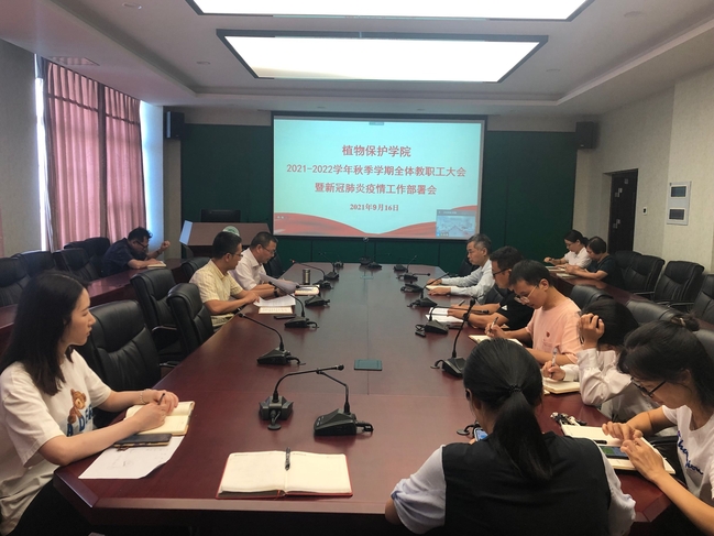 9月16日下午,植物保护学院在博学楼703以线上线下相结合方式召开2021-2022学年秋季学期全体教职工大会暨新冠肺炎疫情防控工作部署会。院党委书记林栋主持会议。