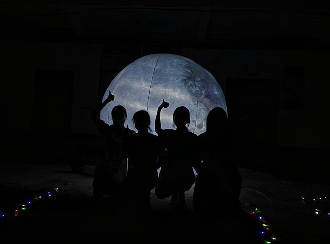 在“一起私奔到'月球'”的月亮合影活动现场有一个栩栩如生的月球模型,同学们发挥各自的奇思妙想,在工作人员的帮助下,呼唤三两好友一同合照,纪念这一特殊的中秋佳节。