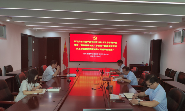 9月22日上午,公共管理学院党委理论中心组学习习近平总书记在中央党校 (国家行政学院)中青年干部培训班开班式上的重要讲话精神和《习近平在福建》,学院理论中心组成员参加学习,院党委书记曾起郁主持会议。