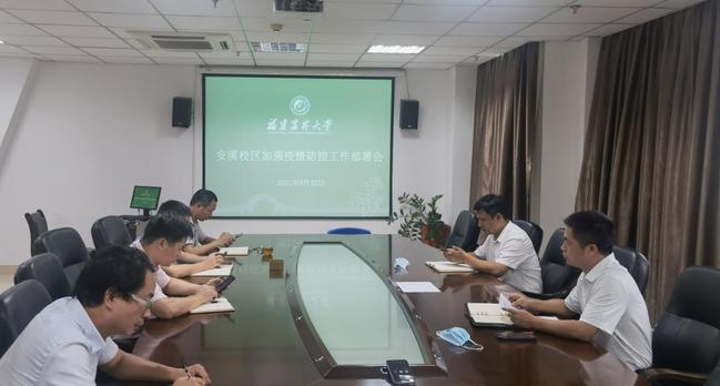 9月22日下午,安溪校区·安溪茶学院党委通过线上线下结合的形式召开再研究再部署加强新冠肺炎疫情防控工作专题会议,院长戴永务主持会议,领导班子成员、学院联防联控办公室成员参加会议。