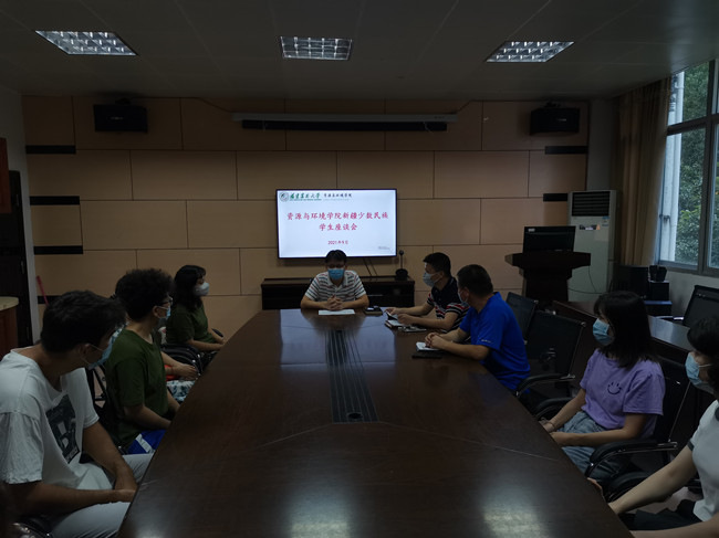 9月25日,为贯彻落实中央民族工作会议精神,深化民族团结进步教育工作,铸牢中华民族共同体意识,资源与环境学院在博学楼210会议室召开新疆籍少数民族学生座谈会。学院党委书记童庆满、副书记修新田,新疆内派教师阿巴白克热·海力力,学院全体辅导员和新疆籍少数民族学生参加座谈会。座谈会由修新田主持。