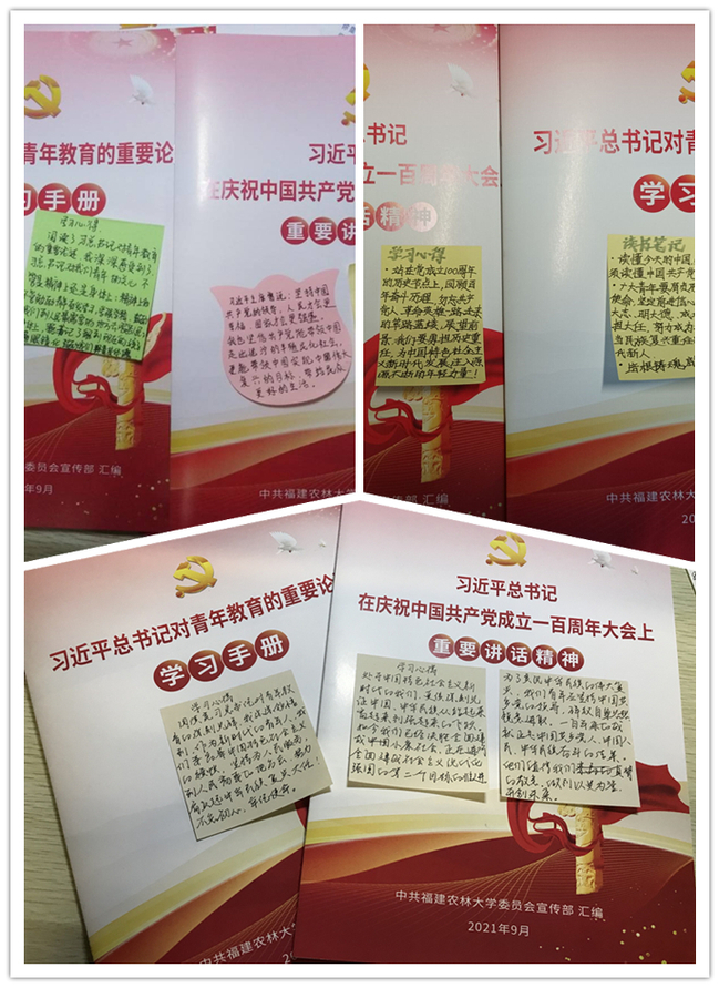 2021级特种经济动物饲养专业研究生唐韶晗在学习笔记中写道:入学伊始,学校为我们提供了满满的精神食粮,让我们在多形式、多载体、多角度的党史学习教育中收获动力、鼓舞干劲。书籍影音资料皆是为我们成长充电的材料。我们要牢记习近平总书记的期望与嘱托,学习先进人物的优秀品质和崇高精神,内化于心、外化于行,为实现中华民族伟大复兴的中国梦努力学习、不懈奋斗。