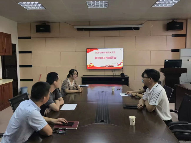 近日,资源与环境学院在博学楼210会议室召开新学期关工委工作会议。学院党委书记童庆满,学院党委副书记、关工委主任修新田,学院团委书记、关工委秘书张锦艳以及学院各位关工委委员参加会议,会议由修新田主持。