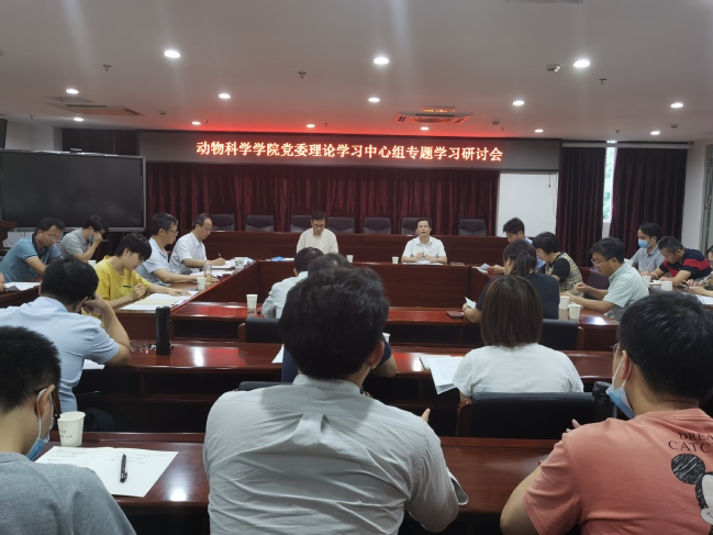 10月12日下午,动物科学学院党委在学院会议室召开理论学习中心组专题学习研讨会。学院党委委员、领导班子成员、党支部书记、各教学系负责人、科级干部、辅导员等参加。会议由学院党委书记黄毅军主持。