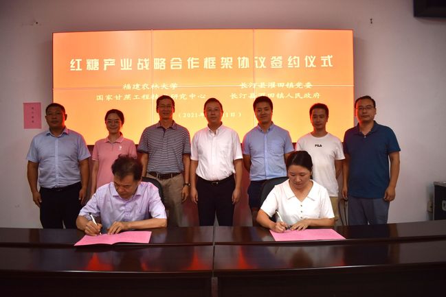 调研结束后,中心一行在濯田镇党委会议室召开了调研专题座谈会,交流探讨如何加快推进濯田甘蔗生产红糖制作产业。会上,双方代表还签订了“红糖产业”战略合作框架协议。