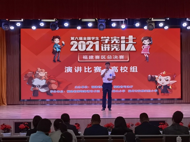 10月23日-24日,由福建省教育厅、福建省司法厅主办的第六届全国学生“学宪法 讲宪法”福建赛区总决赛在福州市屏山小学举办。经激烈角逐,我校公共管理学院法学专业潘侨晟同学演讲的《抗疫中的宪法力量》获高校组二等奖,王进威同学获知识竞赛高校组优秀奖。