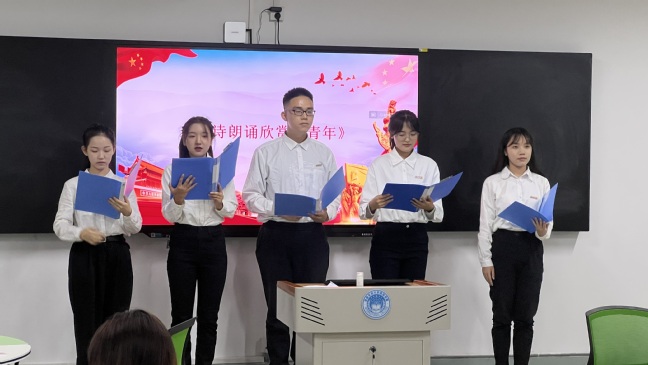 会议在庄严的国歌中拉开帷幕,与会同学们共同回顾了入学以来学院先进人物引领教育活动的学习情况,各班级新生代表则结合自身实际,畅谈教育活动心得体会,学生代表饱含深情的诗朗诵《青年》将本次活动推上了高潮。