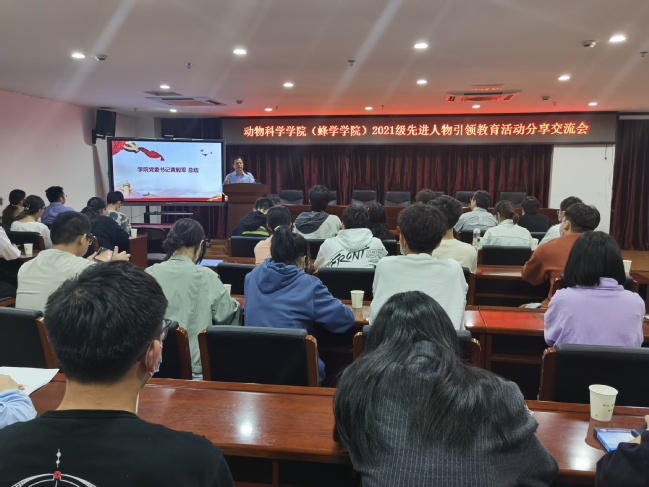 10月28日下午,动物科学学院(蜂学学院)在学院会议室举办2021级新生先进人物引领教育分享交流会。学院党委委员、2021级班主任、新生辅导员、新生代表等参加。会议由辅导员赵佳懿主持。