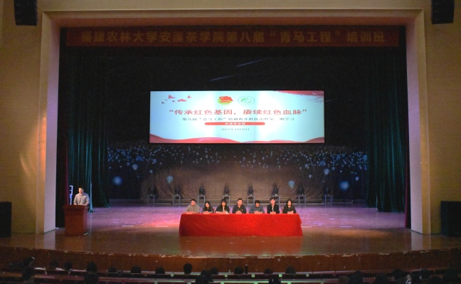 11月8日晚,安溪茶学院“传承红色基因,赓续红色血脉”第八届“青马工程”培训班开班仪式在校区明德报告厅举行。校区·学院党委书记连文,校区·学院党委副书记李治洲,全体辅导员以及培训班全体学员共390余人参加了开班仪式。开班仪式由团委指导老师杨小飞主持。