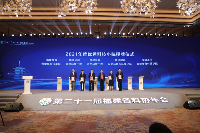 11月11日上午,第二十一届福建省科协年会在泉州举办。会上举行了2021年度“福建省优秀科技小院”授牌仪式,我校责任专家建设的福建平和蜜柚科技小院、福建闽侯青梗菜科技小院、福建建瓯闽北乌龙茶科技小院、福建永春芦柑科技小院、福建上杭通贤乌兔科技小院等5家科技小院荣获2021年度“福建省优秀科技小院”荣誉称号。