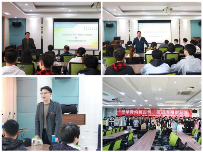 仪式上,易志刚结合《环境生态学》课程思政的开展,详细阐述了学院 “四色”文化生态育人体系内容和含义,并对即将开展的“红、橙、绿、蓝”四场生态文明主题教育活动进行了安排。张海峰作了生态文明主题教育户外安全培训讲座,就野外求生、心肺复苏训练、危险急救等相关方面知识进行讲授,提高同学的安全防范意识,确保后续主题教育活动的顺利开展。