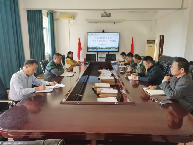 11月24日下午,计算机与信息学院召开大学生就业创业工作推进会。学院领导班子、党委委员参加,会议由院党委书记钟一文主持。