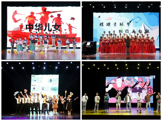 大赛在校艺术团合唱团徐徐而起的《南泥湾》拉开序幕,来自淮安实验小学可爱的小朋友们用稚嫩的童声唱响《中华少年》,尽显新生代风采;话剧《英魂归途》与群诵《觉醒年代》让我们梦回那段血与泪的革命岁月,向英烈们献上最崇高的敬意;小品《上课请听好》与《绝不躺平》活灵活现地演绎出了当代大学生的生活现状;《推开世界的门》《奔跑》《Double Power》等一系列歌舞表演为现场带来了一次次视听盛宴。
