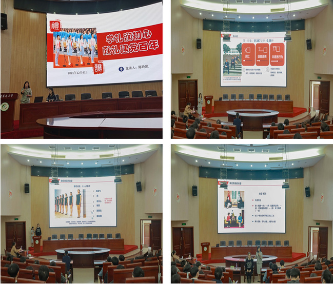 仪式结束后,后勤管理处副处长陈玲凤进行了主题为“学礼润初心,献礼建党百年”的第一专题培训,分别从“礼仪的重要性”“礼仪的认知”“校园着装和仪容规范” 三个方面进行了阐述,希望同学们要从为人处世的规范出发,在日后的学习、生活、工作上做到身体力行。