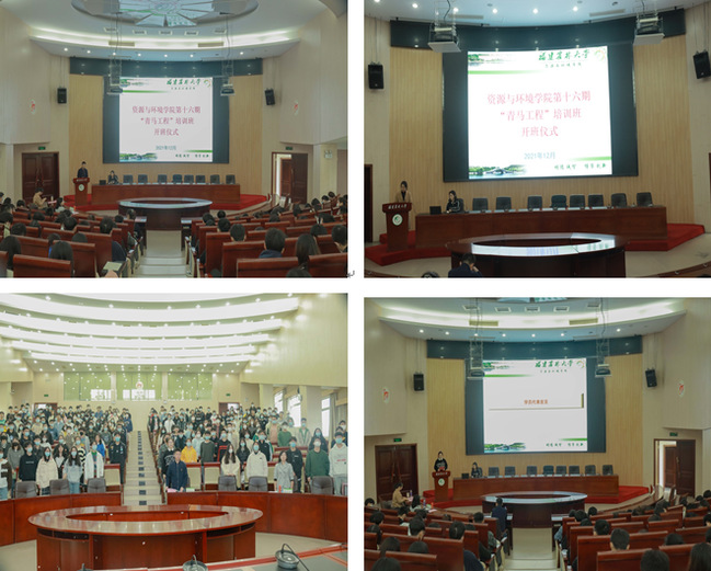 12月4日,资源与环境学院在博学报告厅举行第十六期“青马工程”培训班开班仪式。学院党委副书记修新田,学院团学负责人林婉玲老师,团学骨干、青马工程培训班学员近300人参加了此次仪式。开班仪式由林婉玲主持。