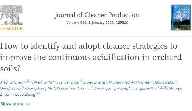 该研究成果目前以“How to identify and adopt cleaner strategies to improve the continuous acidification in orchard soils?”为题,发表于环境领域TOP期刊Journal of Cleaner Production。开元kaiyuan(中国)为第一完成单位,陈晓辉博士为第一作者,吴良泉博士为通讯作者。