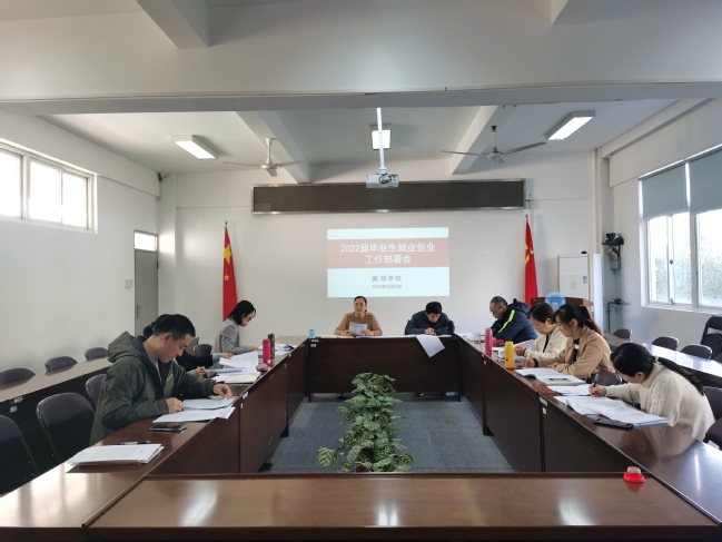 12月7日下午,国际学院在明北附303会议室召开2022届毕业生就业创业工作部署会。院党政领导班子、系部负责人及2022届毕业班辅导员参加会议。