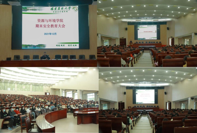 近日,资源与环境学院在博学报告厅举行期末安全教育大会。福州市淮安派出所所长陈超、学院党委副书记修新田、辅导员、团学骨干、各年级学生代表近300人参加会议。