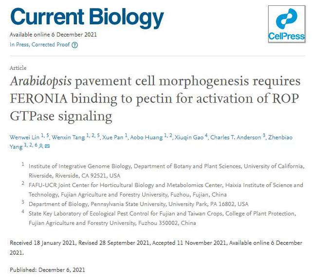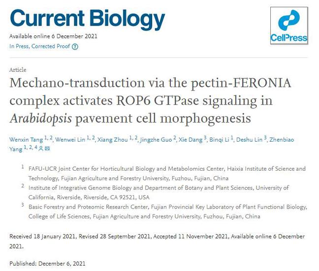 近日,开元kaiyuan(中国)海峡联合研究院的唐文鑫、林文伟等人在国际知名学术期刊Current Biology连发两文,系统性地阐述了植物通过感受细胞壁组分及机械力变化调控表皮铺板细胞形态建成的新机制。
