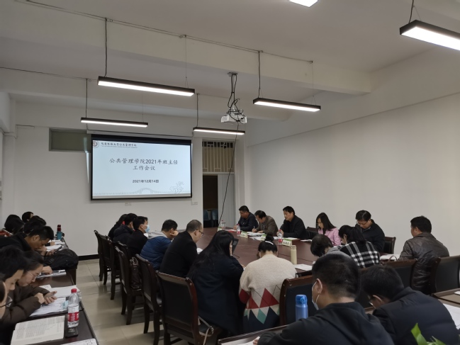 12月14日下午,公共管理学院在诚智楼306会议室召开2021年班主任工作会议,学院党委书记曾起郁,院长阮晓菁,副书记郑龙章,副院长周毕芬、范胜龙,全体班主任和辅导员参加会议,会议由周毕芬主持。