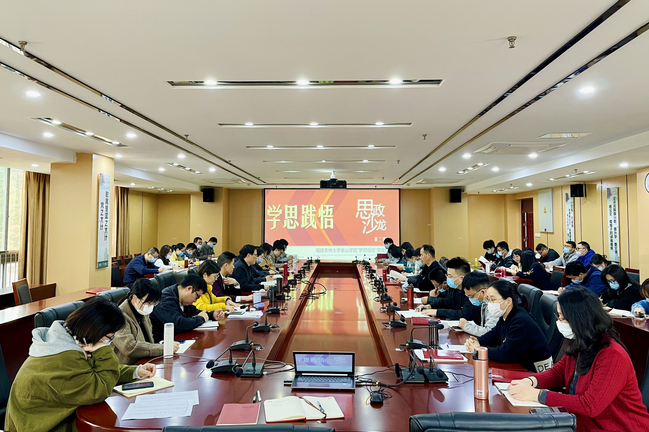 12月14日上午,金山学院在学院第二会议室举办第二期“学思践悟·思政沙龙”活动,学院全体政工干部参加活动,活动由学院党委副书记李晓辉主持。