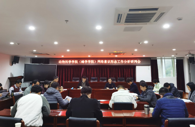 12月21日,动物科学学院(蜂学学院)在学院会议室召开网络意识形态工作分析研判会。学院领导班子成员、党委委员、教学系(实验室)主任、党支部书记、科级干部和辅导员等参加。会议由学院党委书记黄毅军主持。