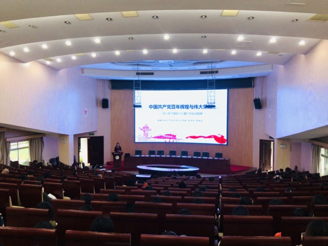 12月23日下午,国际学院党委在博学报告厅举办学习贯彻党的十九届六中全会精神宣讲报告会。学校党的十九届六中全会精神宣讲团成员、马克思主义学院副教授黄秀玲应邀作专题讲座,学院全体教职员工和学生代表200余人聆听,院党委书记张华英主持会议。