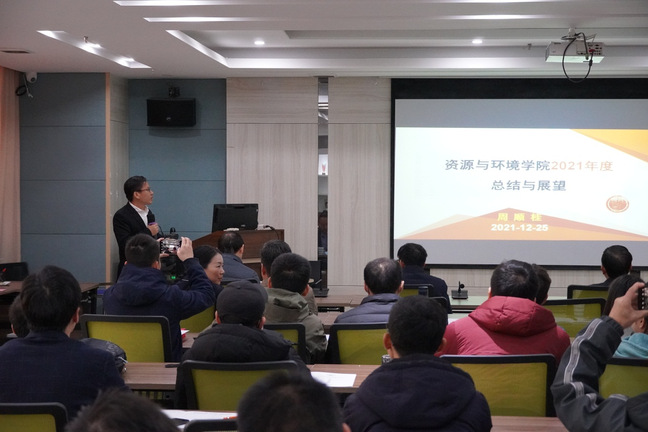 近日,资源与环境学院在田家炳楼611会议室举办了2021年全院教职工大会,重点对2021年度学院各项工作进行总结,对学院2022年度工作进行部署。学院党政领导、全体教职工参加活动。会议由学院党委书记童庆满主持。