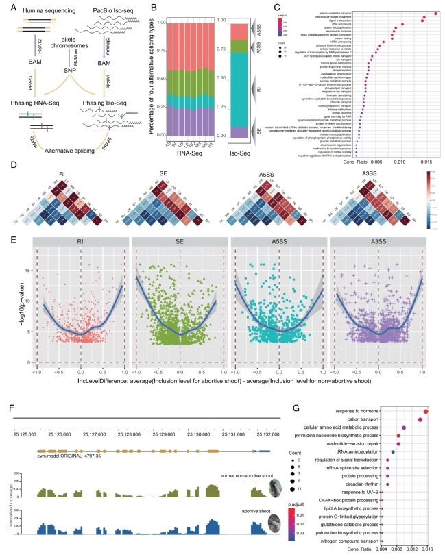 麻竹笋营养价值十分丰富,富含蛋白质、脂肪、糖类、维生素C、钙磷和铁等成份。麻竹退笋是制约笋用林高效培育的因素之一。对正常发育的麻竹笋与退笋进行组学分析,发现正常发育的麻竹笋和退笋之间存在大量差异的基因表达和选择性剪接事件,筛选到了一批可进行后续进一步功能研究的差异基因候选,为进一步探索麻竹退笋的机理提供了依据。