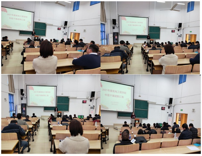 1月7日下午,机电工程学院召开学院党政领导干部2021年度述职考核评议会。会议由学院党委书记池有忠主持,学院党政班子及教职工代表近50人参加了会议。