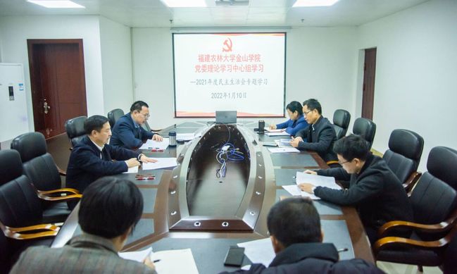 1月10日,金山学院党委理论学习中心组在学院第一会议室开展2021年度民主生活会专题学习。院领导参会,会议由院党委常务副书记孙思惟主持。