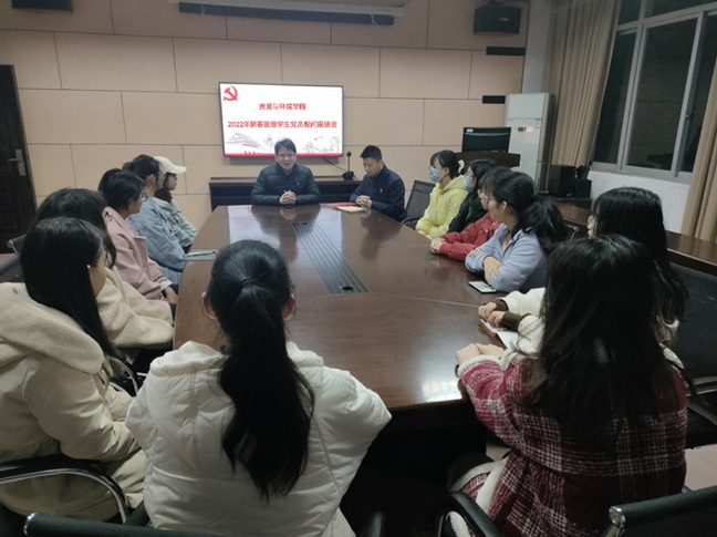 1月10日下午,资源与环境学院在博学楼210会议室召开2022年新春困难学生党员慰问座谈会,学院党委书记童庆满、副书记修新田、困难学生党员代表等近20人参加座谈会。座谈会由修新田主持。