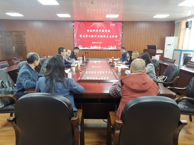 1月15日下午,食品科学学院党委召开党史学习教育专题民主生活会,校第二指导组叶青、陈玲凤、陈益芳、郑江枫到会指导。学院党委委员参加会议,非中共党员的副院长、工会主席、学院纪委委员列席会议,会议由学院党委书记苏健涵主持。
