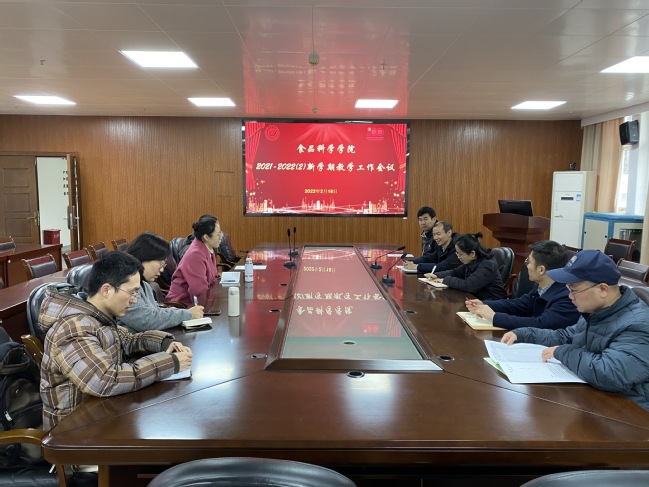 2月18日上午,食品科学学院在学院三楼会议室组织召开新学期本科教学工作部署会议。学院各系、各中心正副主任、教学办负责人参加会议。会议由副院长曾绍校主持。