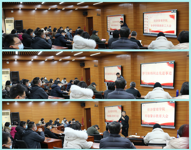 2月23日下午,经济管理学院党委开展师德师风专题教育,全体教职员工通过线上线下形式参加。学院党委副书记李健英主持会议。