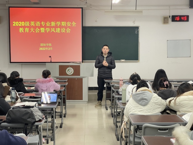 据悉,开学第一周,国际学院辅导员分年级专业召开“开学第一课”安全教育大会,提醒学生做好日常疫情防控措施,增强安全防范意识和处理突发事件的能力,保证同学们能够安全健康地学习生活。