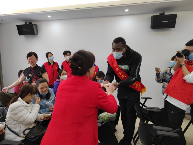 来自尼日利亚的留学生迈克表示,很高兴作为志愿者参加此次活动。年轻人送“拗九粥”给老人,看似简单的行为是对敬老孝亲的文化传承。中国是一个尊老爱老的国家,这一美德仍在代代相传,希望将来能有更多机会参加这样的活动。
