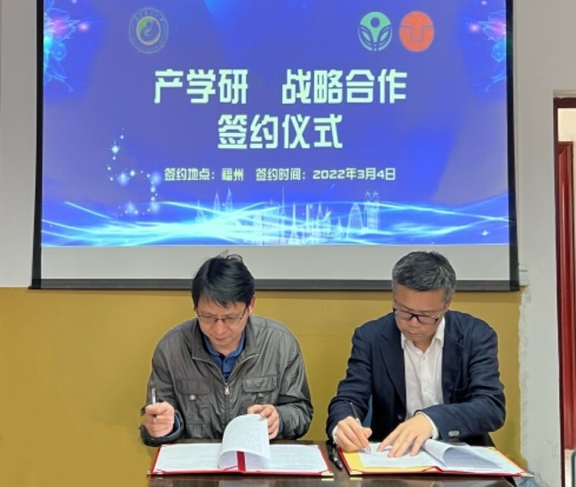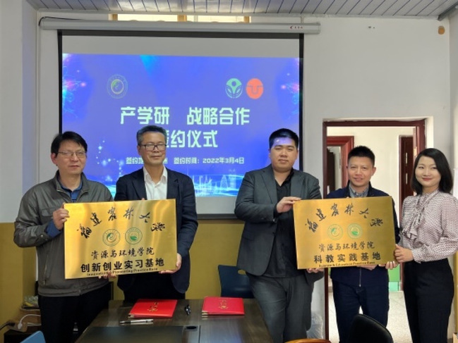童庆满和陈圣杰分别代表院企双方签订产学研战略合作协议。签约仪式结束后,双方还举行了科教实践基地和创新创业实习基地的授牌仪式。