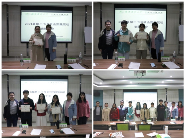 汇报结束后,参会老师对29支“三下乡”社会实践队进行评审打分,最终赴晋江英林实践队获得一等奖;赴福州市“何小禹”内河调研实践队、赴漳州市平和县土壤检测“三下乡”社会实践队获得二等奖;赴三明泰宁大龙乡实践队、赴三明市尤溪县传承红色基因科技振兴乡村实践队、赴三明市建宁县“闽江源第一镇”均口镇实践队获得三等奖。