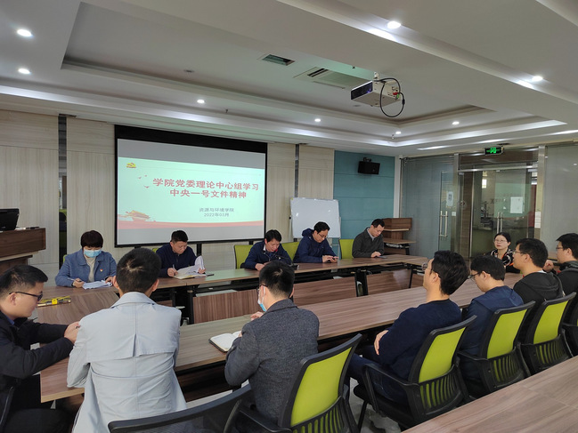 近日,资源与环境学院党委理论学习中心组(扩大)专题学习2022年中央一号文件精神,学院党委理论学习中心组成员、支部书记、科级干部参加学习会。学院党委书记童庆满主持学习会。