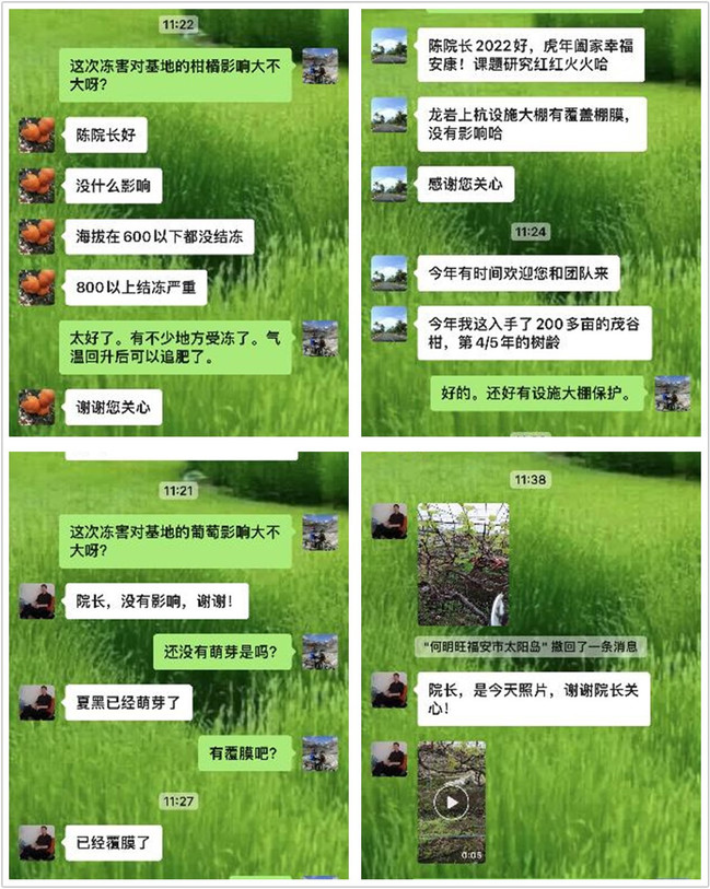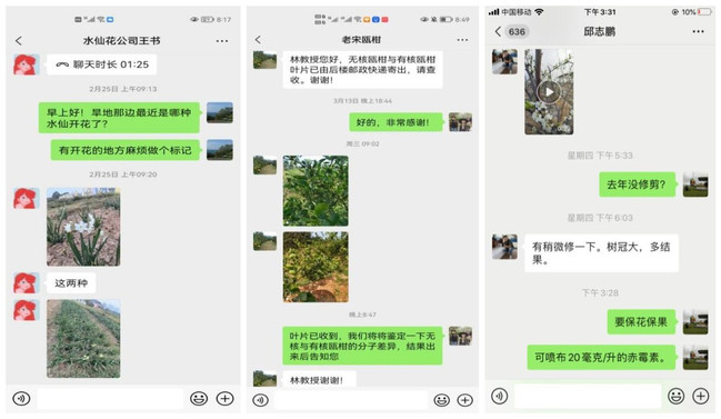 曾黎辉、林玉玲、邱栋梁教授与农户微信交流截图