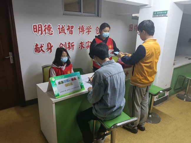 学生社区文明督导志愿服务。随着教学模式由线下转线上,为在宿舍区营造安全良好的学习生活环境,文明督导志愿服务队安排志愿者在北区“青果一站式服务社区”值班,引导宿舍区的学生佩戴口罩;并免费提供口罩、常见药品供学生应急使用;另外,志愿者线上每日及时提醒学院学生进行健康日报和晚归签到,协助辅导员了解每个人的去向,落实每个人的安全,做好校园疫情防控闭环管理,共度抗疫攻坚时刻。