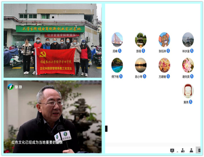 克服困难,持续进取。就打赢疫情防控阻击战,校党委提出了“十个要”和“十个再”工作部署要求,文旅系教工党支部立即行动,短时间内组建起突击队和志愿者,各位党员都踊跃参加,开展各项服务活动。由于福州及学校周边疫情风险,“第二届中国零售管理学术论坛”无法如期线下开展,需转为线上举办。3月20日,文旅系党员教师许安心、陈贵松、仲建兰闻讯,立即主动牺牲周末和休息时间,加班加点一起梳理线上会议前的设备调试、网络保障、议程调整、材料准备、参与人员联系以及会议论文评比等各项工作,确保了论坛如期顺利进行。党员教师雷喜斌老师则带领黄嘉鑫、刘子柠、江琪等同学参与“红色文化规划开发”线上实践项目,引导学生们针对疫情期间的社会需求,不断创新提升专业文化素养。