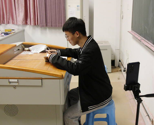 3月26日下午,生命科学学院会议室灯光通亮,生科院大四学生李嘉庚正在进行研究生线上复试的准备工作。通过人脸识别进行身份核验,确保网络信号,音视频信号,双机位位置正常……这是生命科学学院为考研复试同学专门准备的线上复试场地之一。