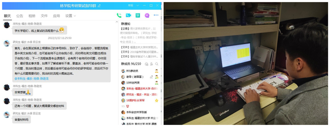 此外,学院还积极组织往届学生和在读研究生为考生们开展线上线下的复试答疑解惑、模拟实际考场复试等活动,向考生们传授自己的经验,帮助他们调整心态、熟悉复试流程及注意事项。