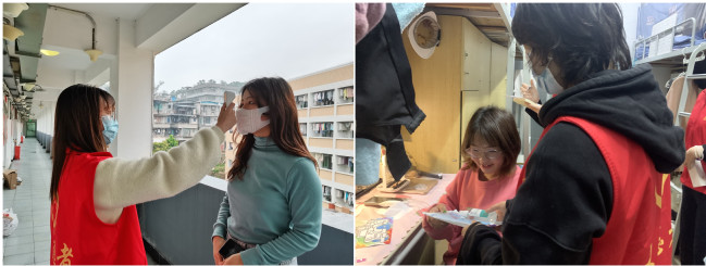 学院设立疫情防控责任区和党员示范岗,党员同志以身作则,带头带领宿舍同学拿起扫把、拖把、毛巾进行宿舍“防疫大清扫”,保持宿舍干净整洁,加强防疫消杀;充分发挥党员示范岗作用,研究生党员每日为所在责任区的同学进行体温测量、查寝,积极宣传防疫政策、措施,与同学们一同学习防疫知识,同时帮助掌握和反馈疫情防控期间同学们遇到的困难和问题,协调学院和学校有关部门帮助解决。学院为全体研究生集中购买了口罩、消毒液等防疫物资,党员志愿者协助学院进行定期派发。